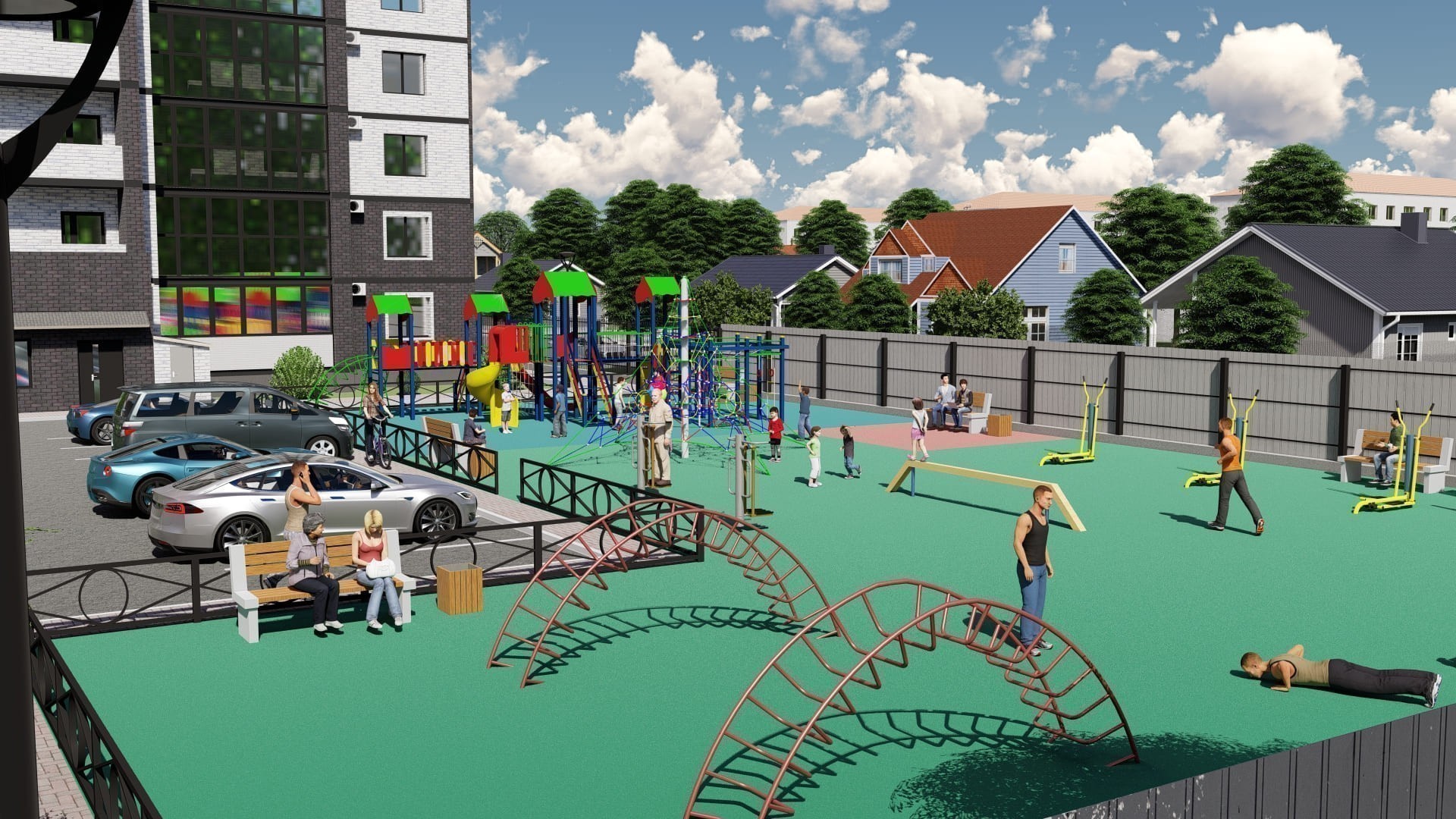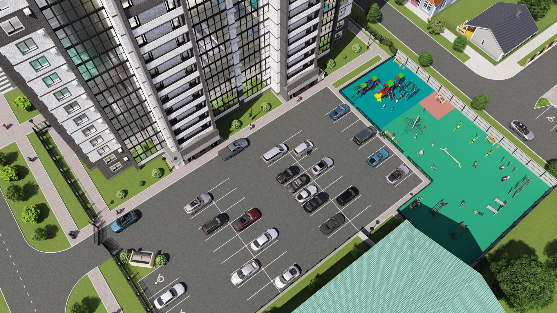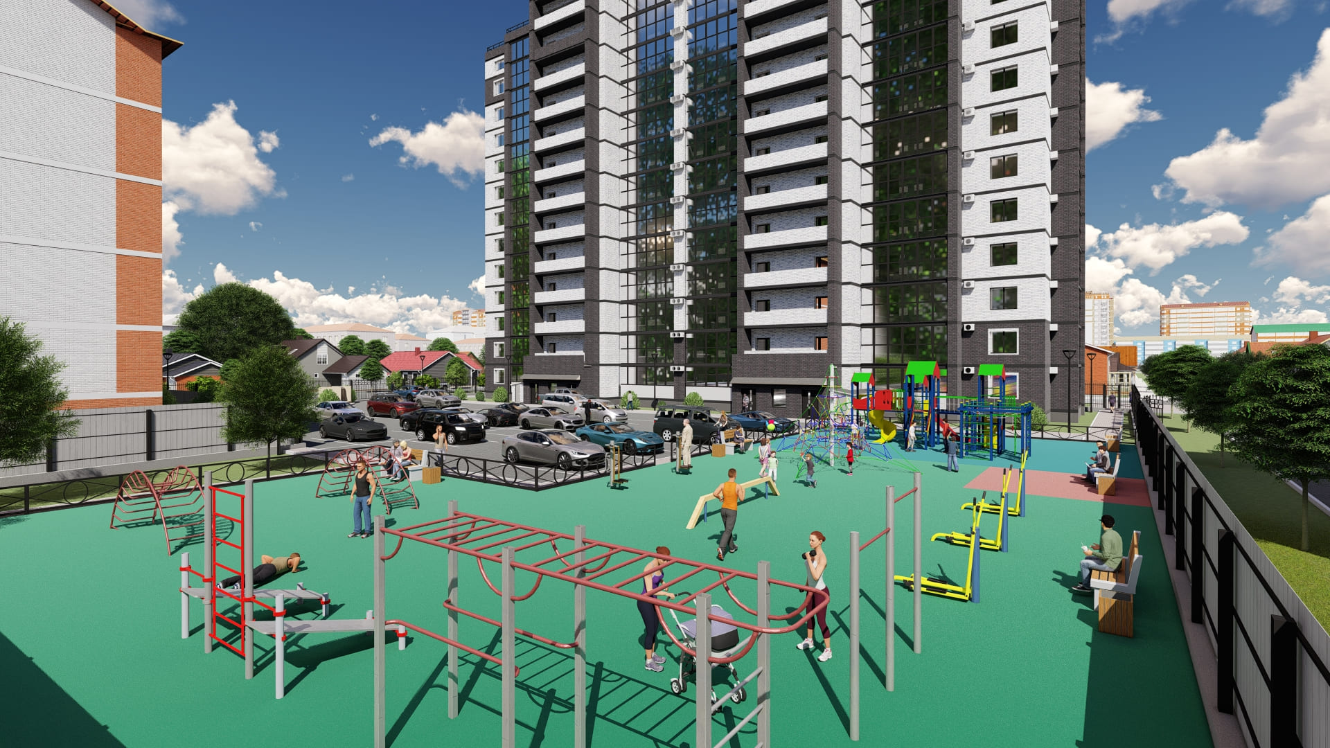 Внутри «Зея парка» много места для тихих прогулок и активного отдыха: в каждом дворе будет парк с детскими и спортивными площадками. В квартиры и дворы сможет беспрепятственно проникать солнце благодаря переменной высоте корпусов — 9 и 16 этажей. В домах будут просторные и светлые подъезды с витражным остеклением и двумя выходами на уровне земли: во двор и на улицу.