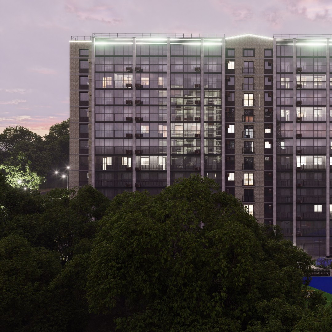 Наружные стены – силикатный кирпич с прижимной стенкой из белого флеш-кирпича Ashen и серого флеш-кирпича Neo под расшивку швов. Стены за остеклёнными лоджиями-силикатный кирпич под расшивку швов.